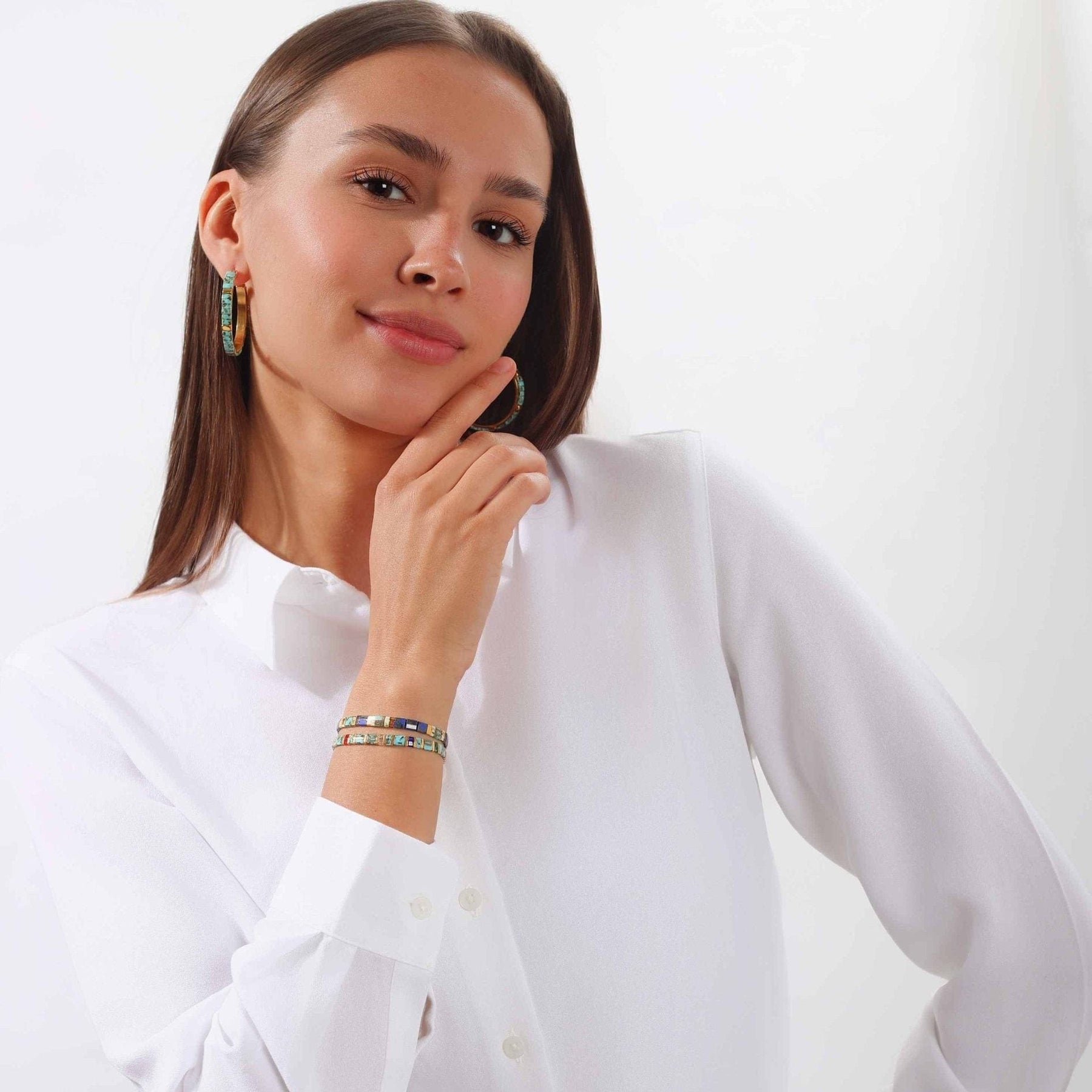 Perles authentiques en verre du Japon miyuki et acier inoxydable doré à l'or fin pour la partie dorée.