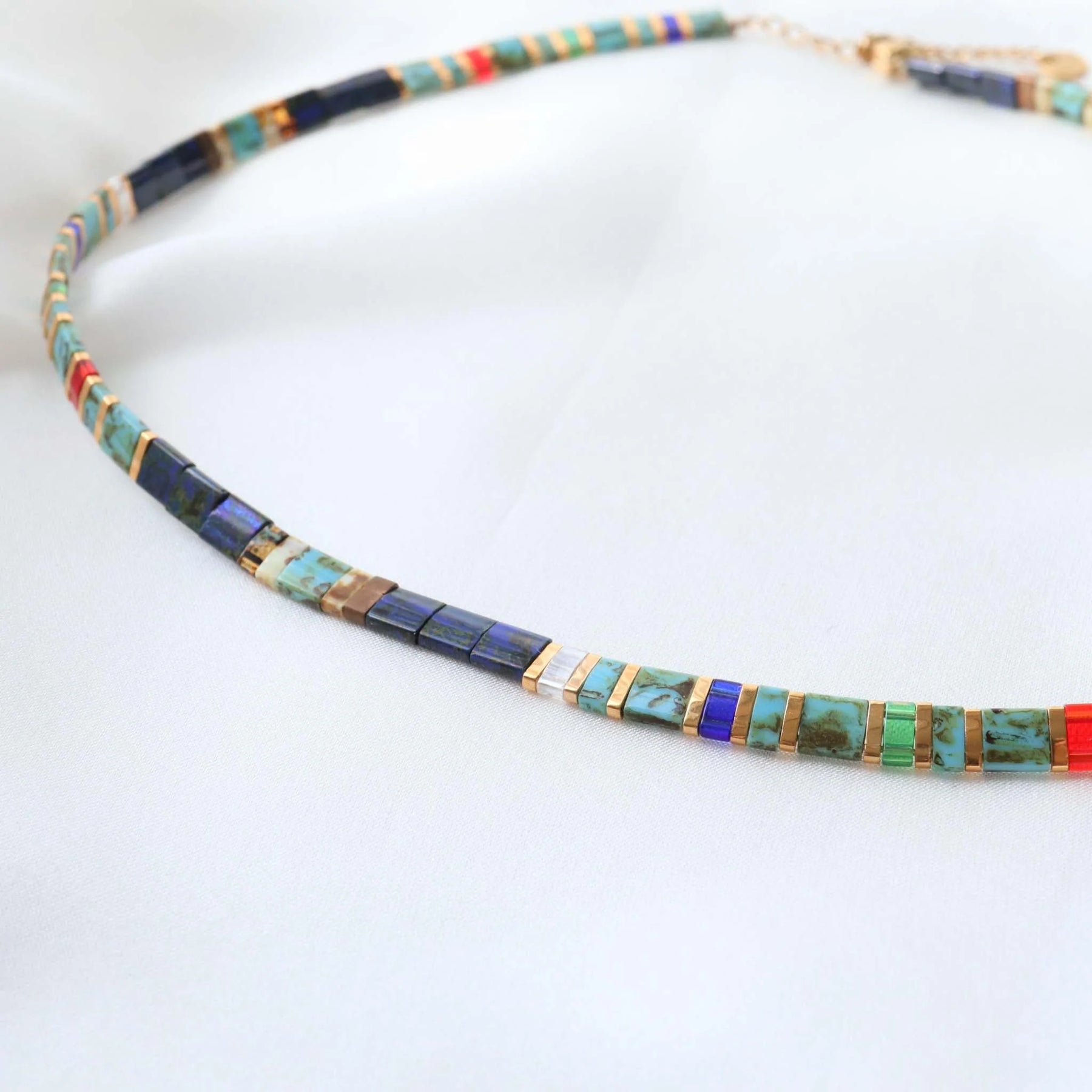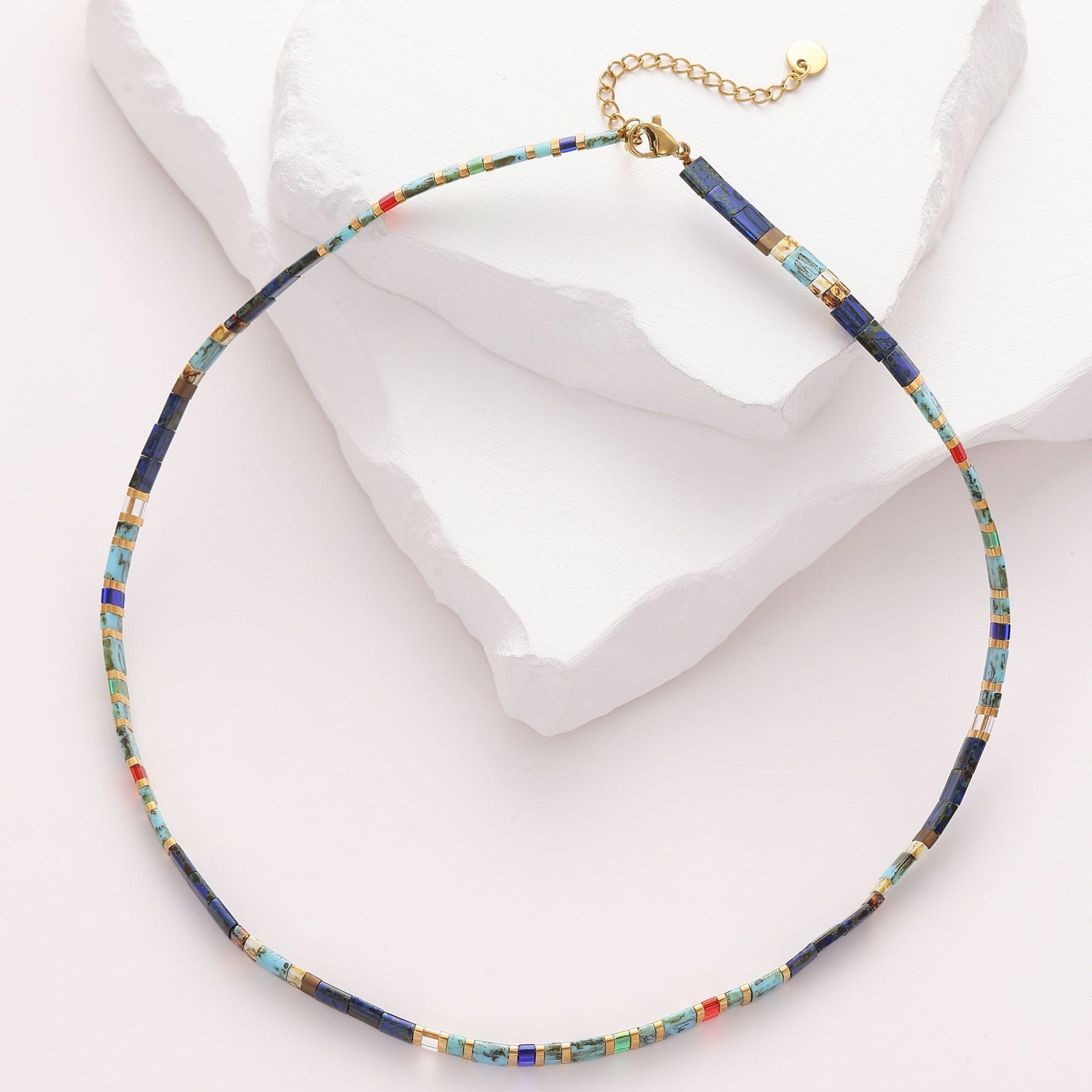 #PAQUESCe nouveau collier unique Lou de Køss Design est réalisé à partir de perles de verre du Japon. Il peut se porter soit ras du cou, soit plus allongé.